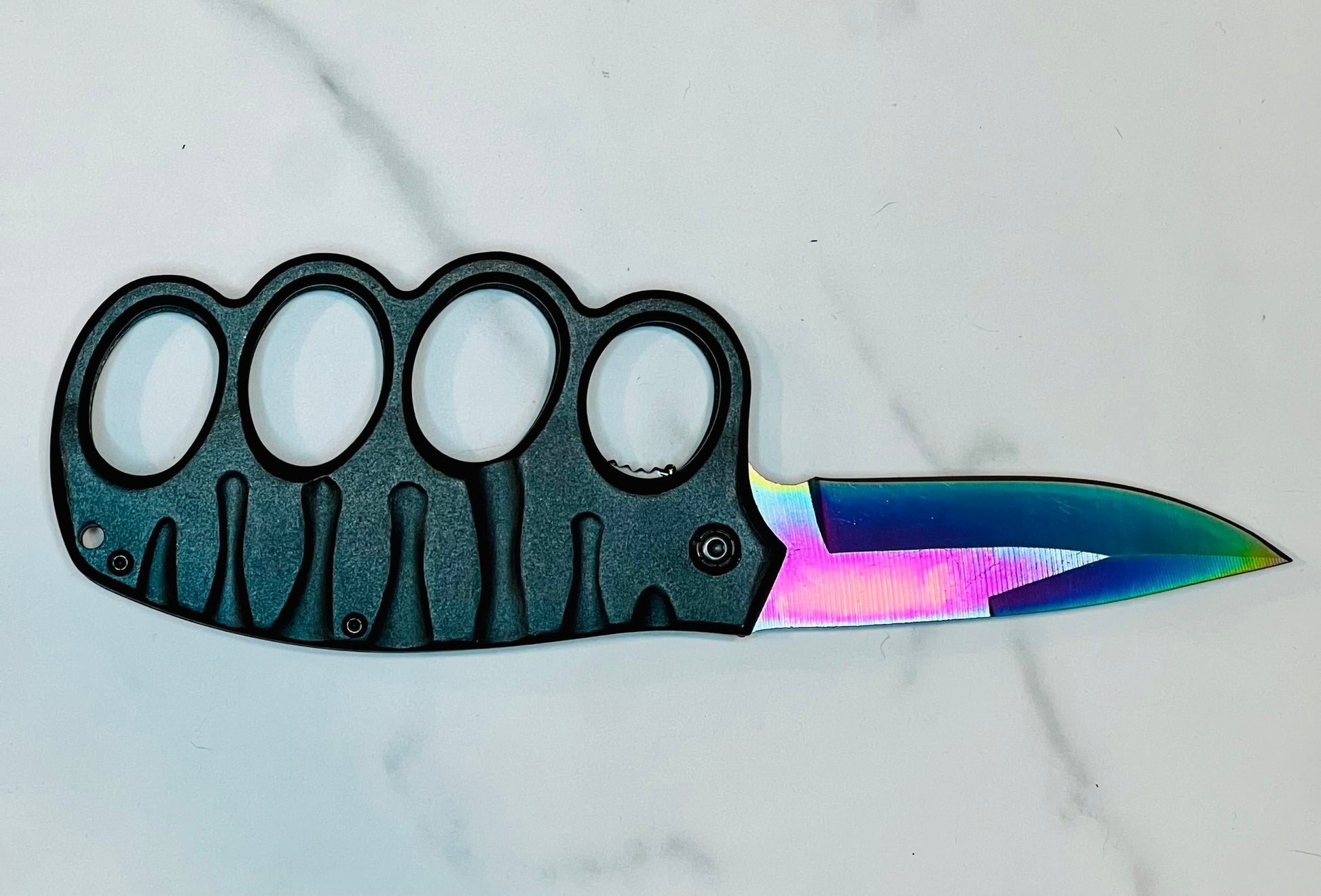 Useful as a knife and knuckle - Easy to drip handle with finger inserts.